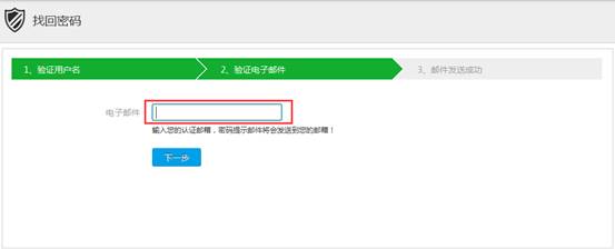 3、輸入注冊郵箱,點擊下一步,如郵箱正確,則顯示郵件發(fā)送成功