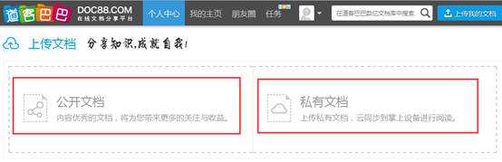 4、進(jìn)入文檔上傳界面后,有“公開(kāi)文檔”和“私有文檔”兩種選擇狀態(tài)